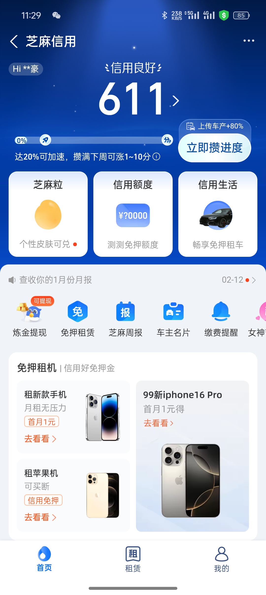 支付宝信用分截图