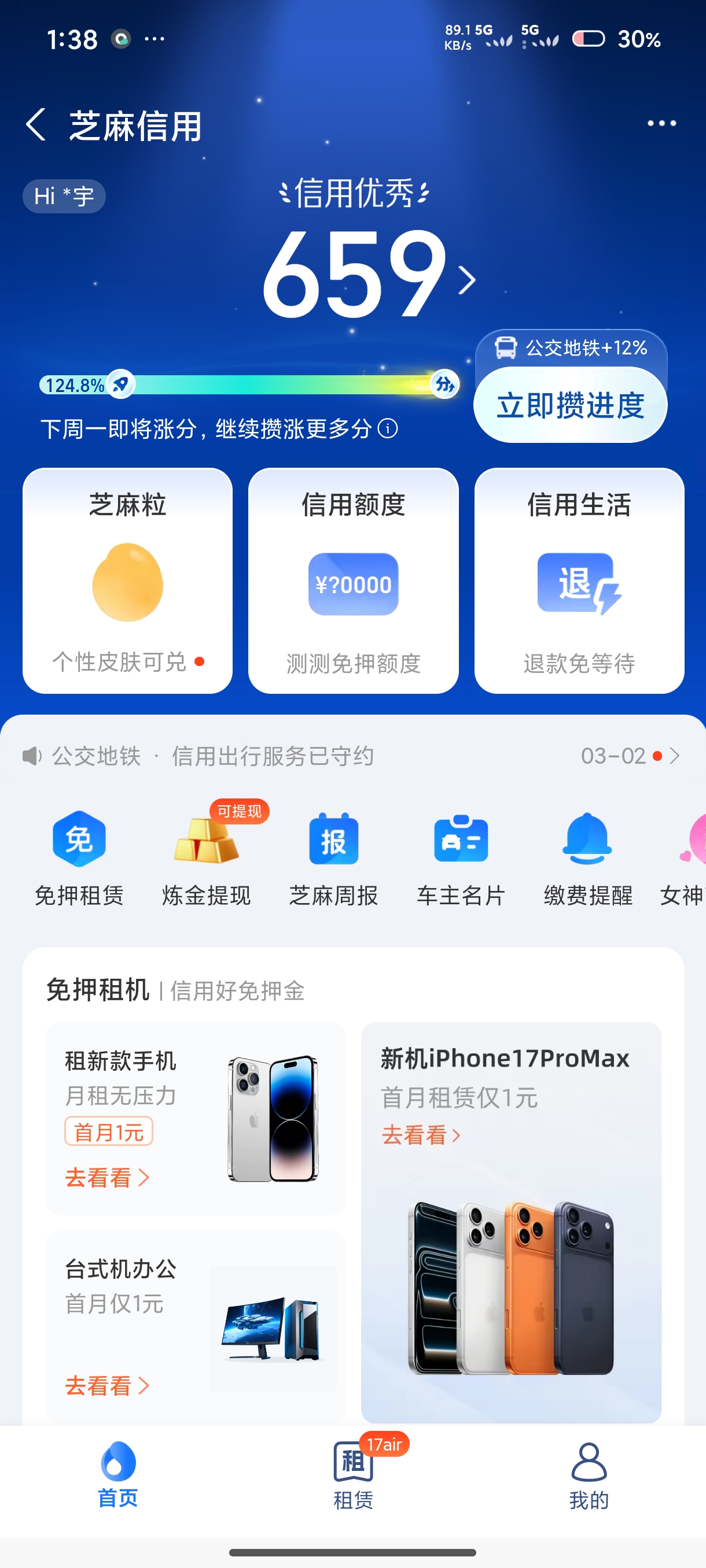 支付宝信用分截图
