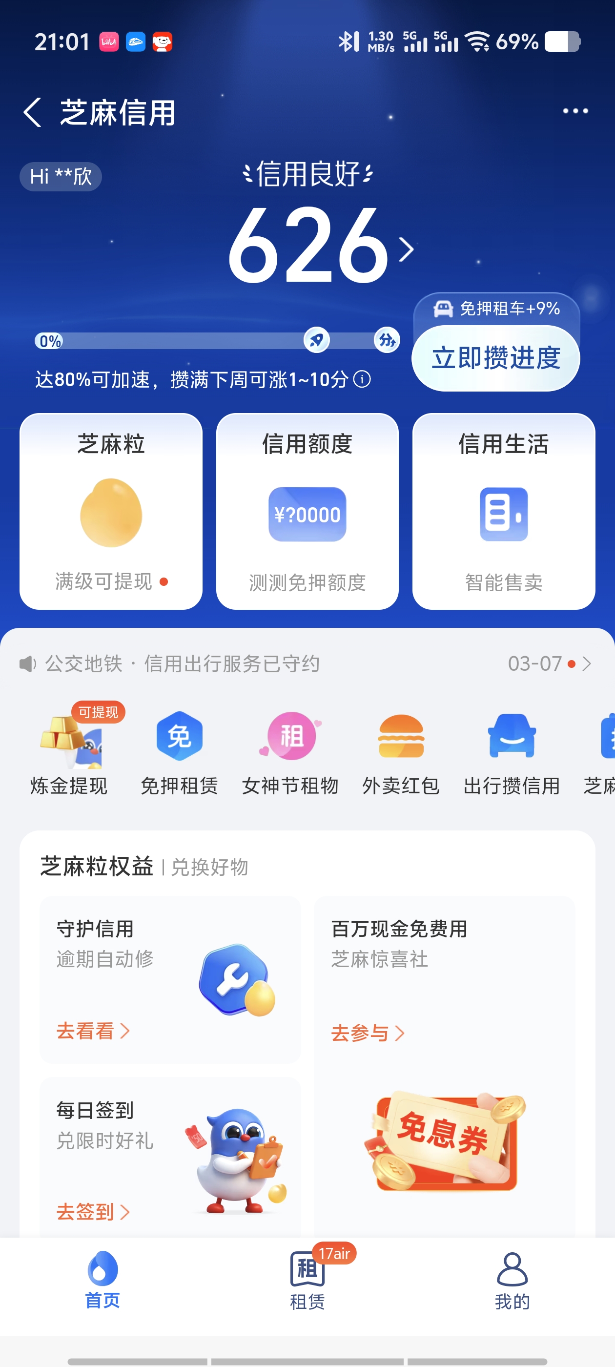 支付宝信用分截图
