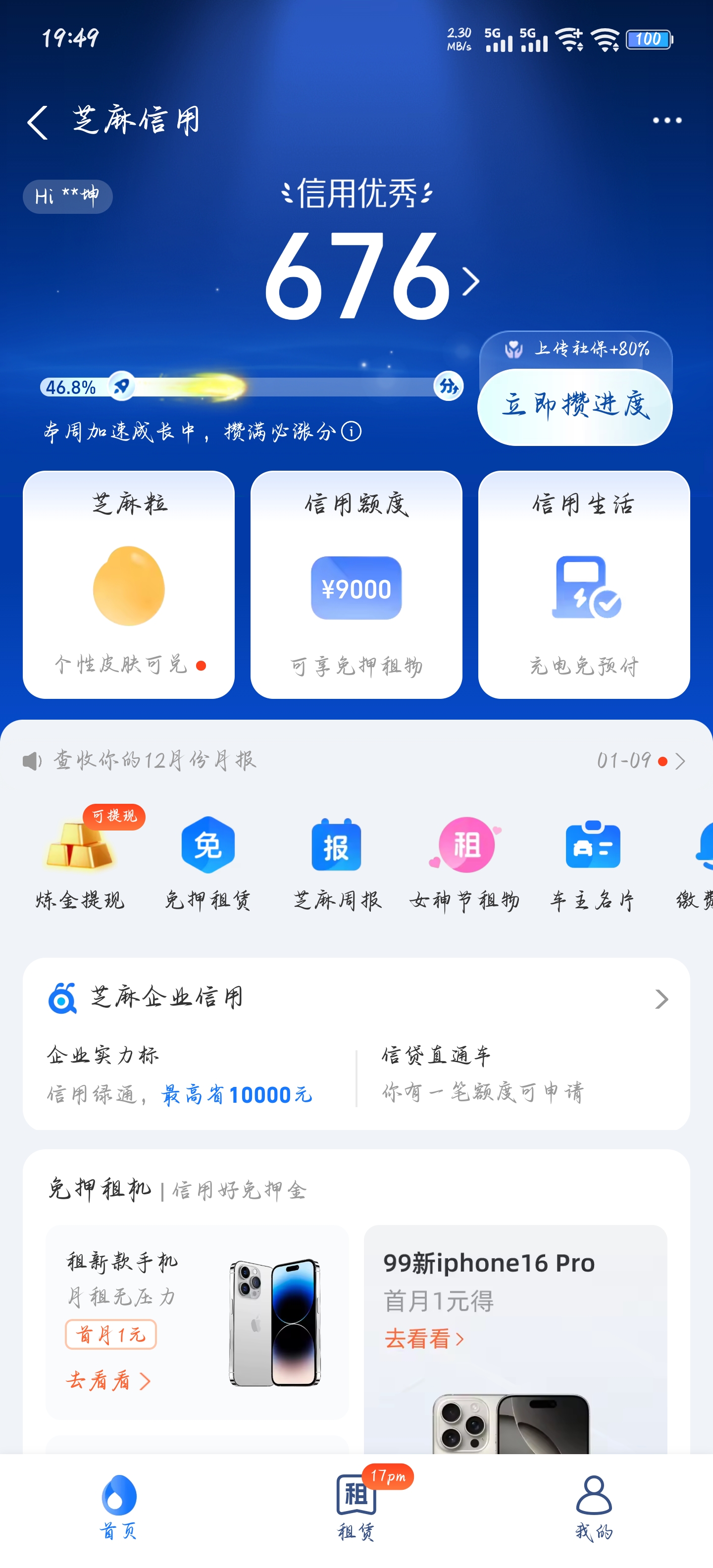 支付宝信用分截图
