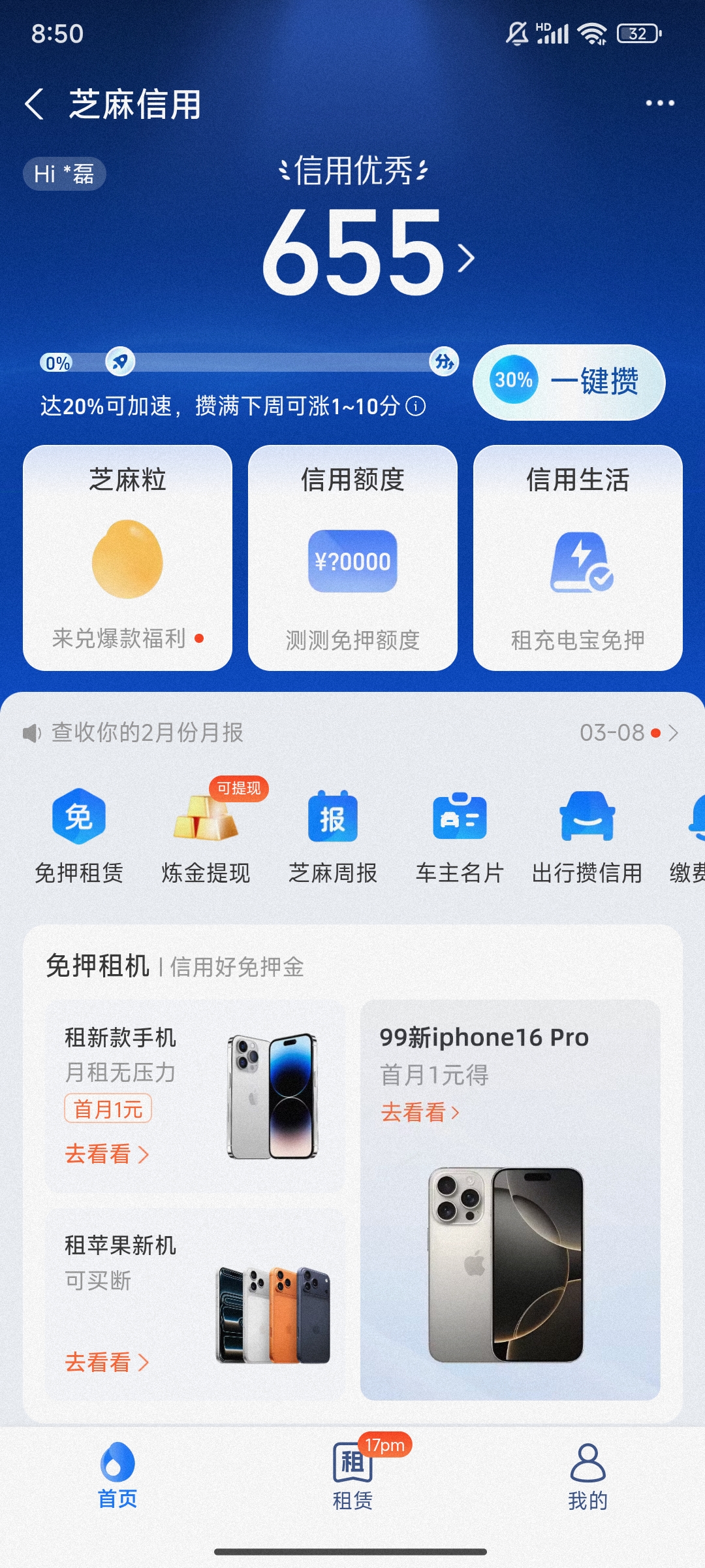 支付宝信用分截图