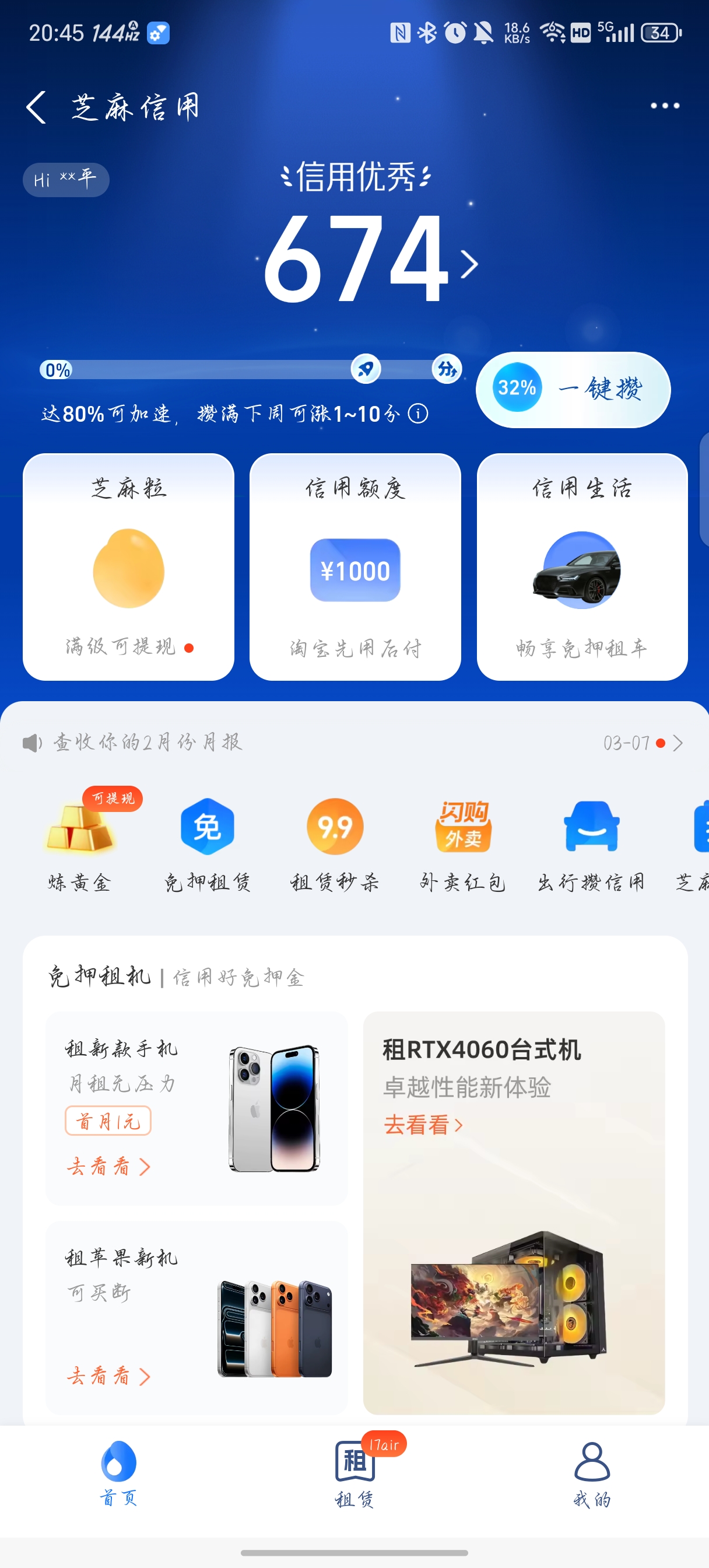 支付宝信用分截图