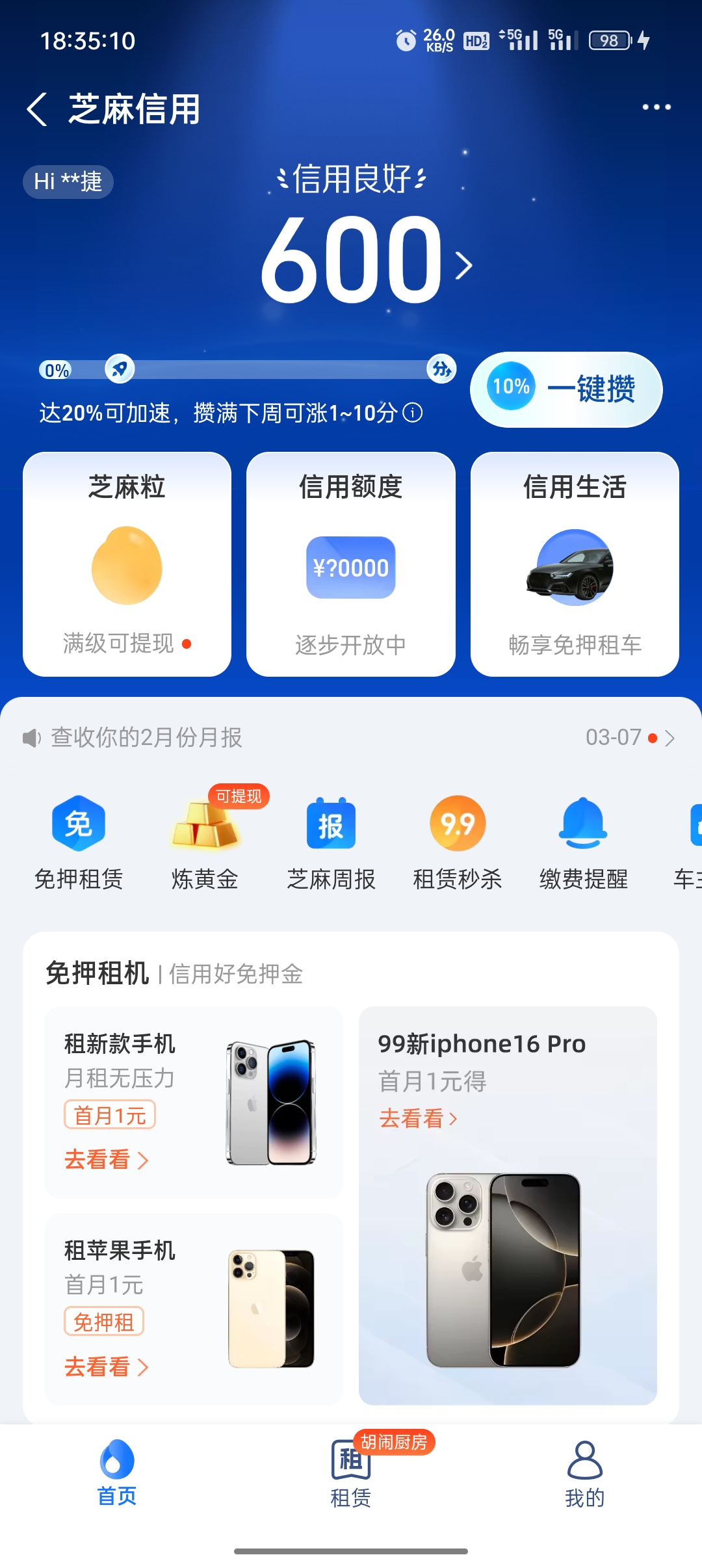 支付宝信用分截图