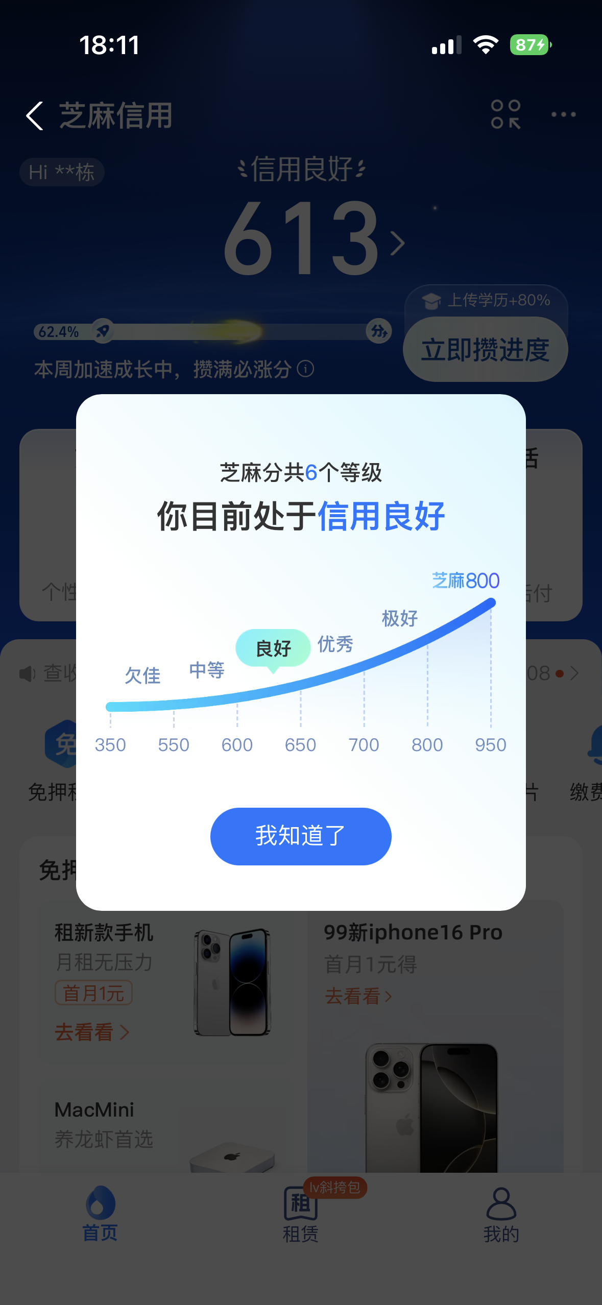 支付宝信用分截图