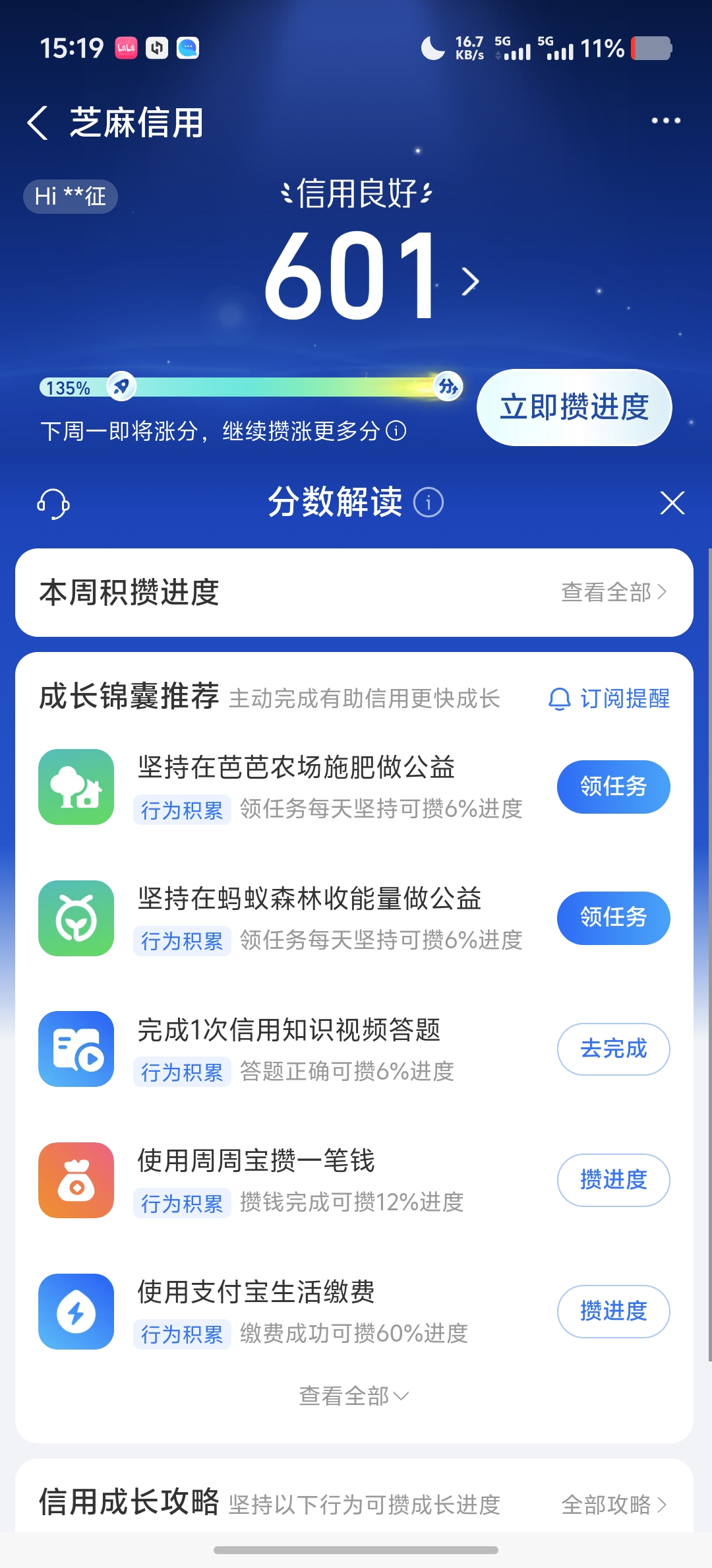 支付宝信用分截图