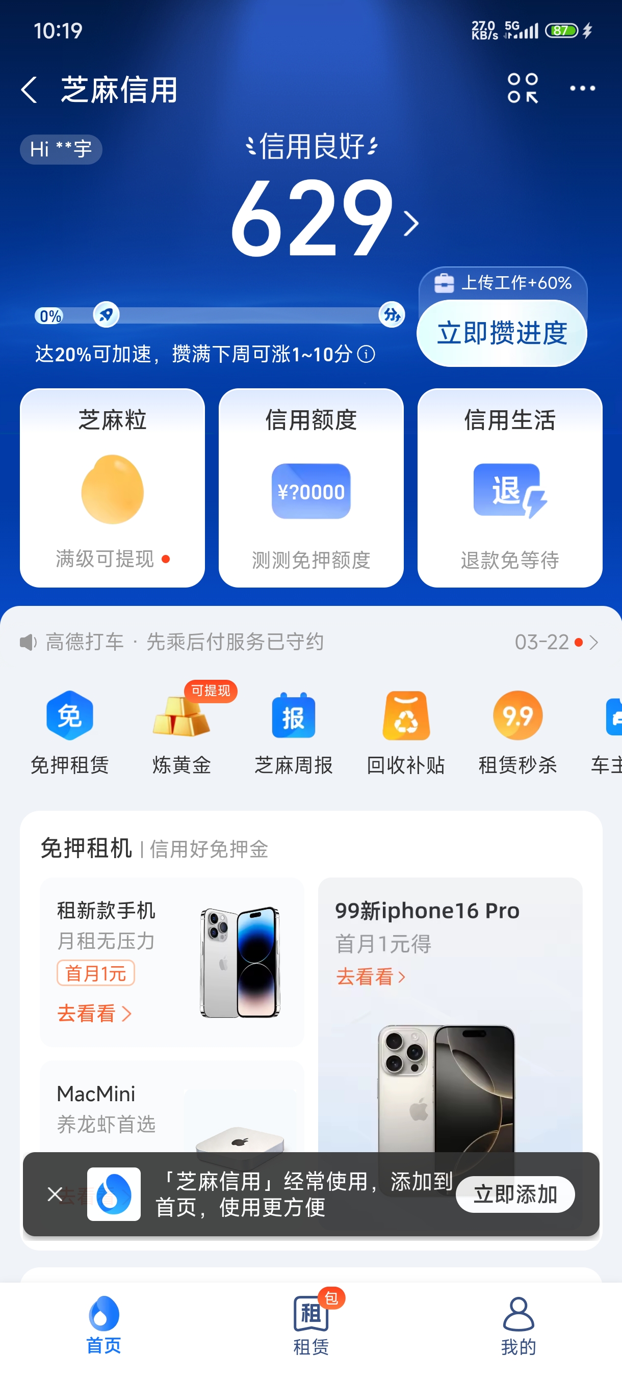 支付宝信用分截图