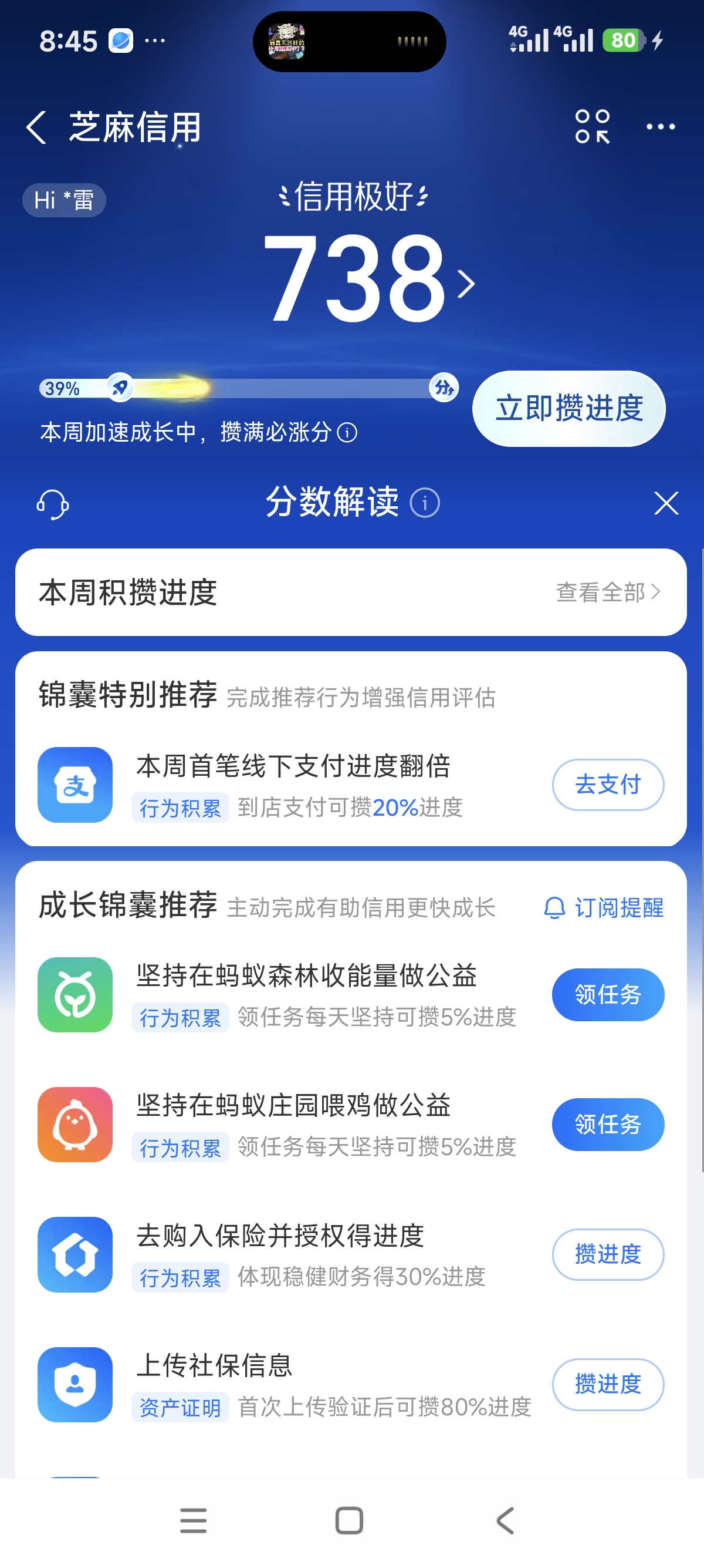 支付宝信用分截图