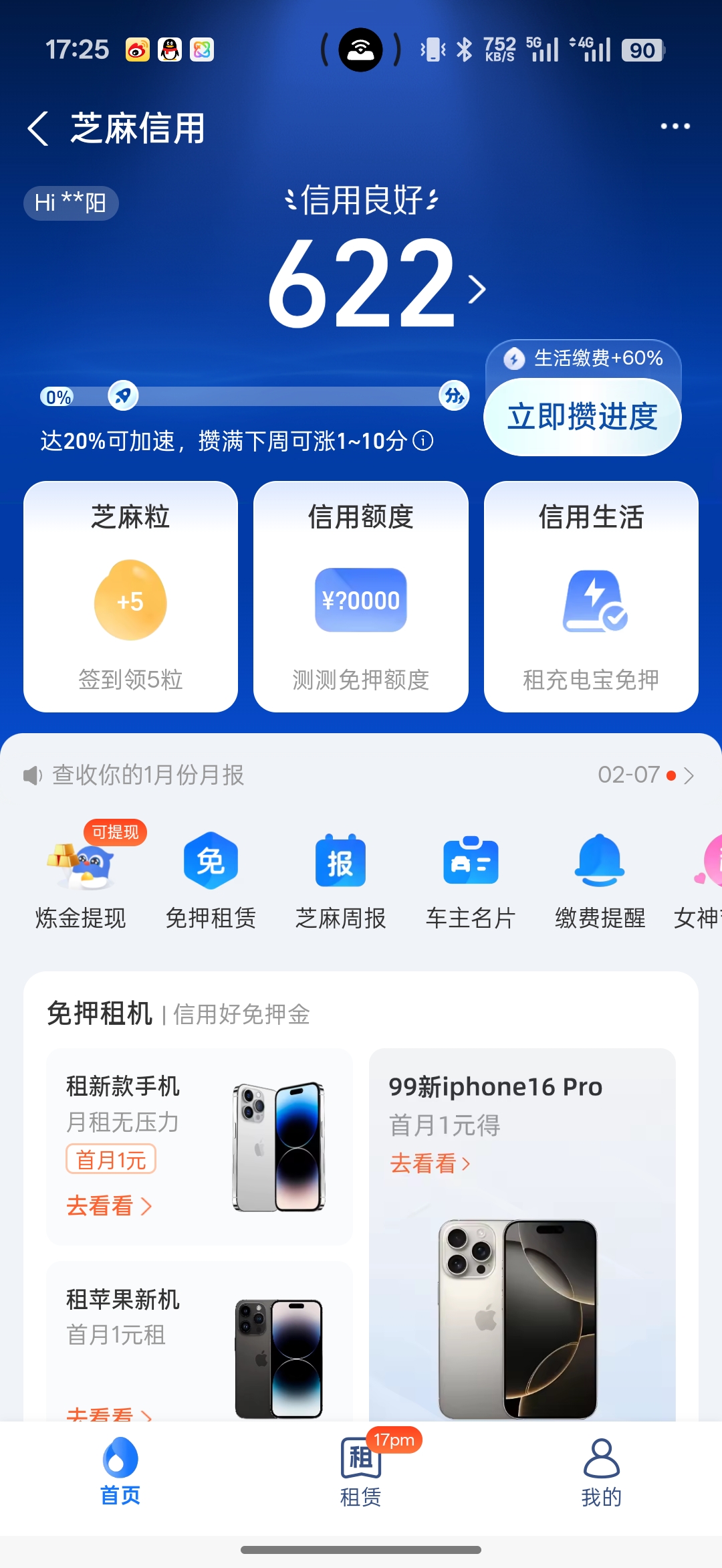 支付宝信用分截图