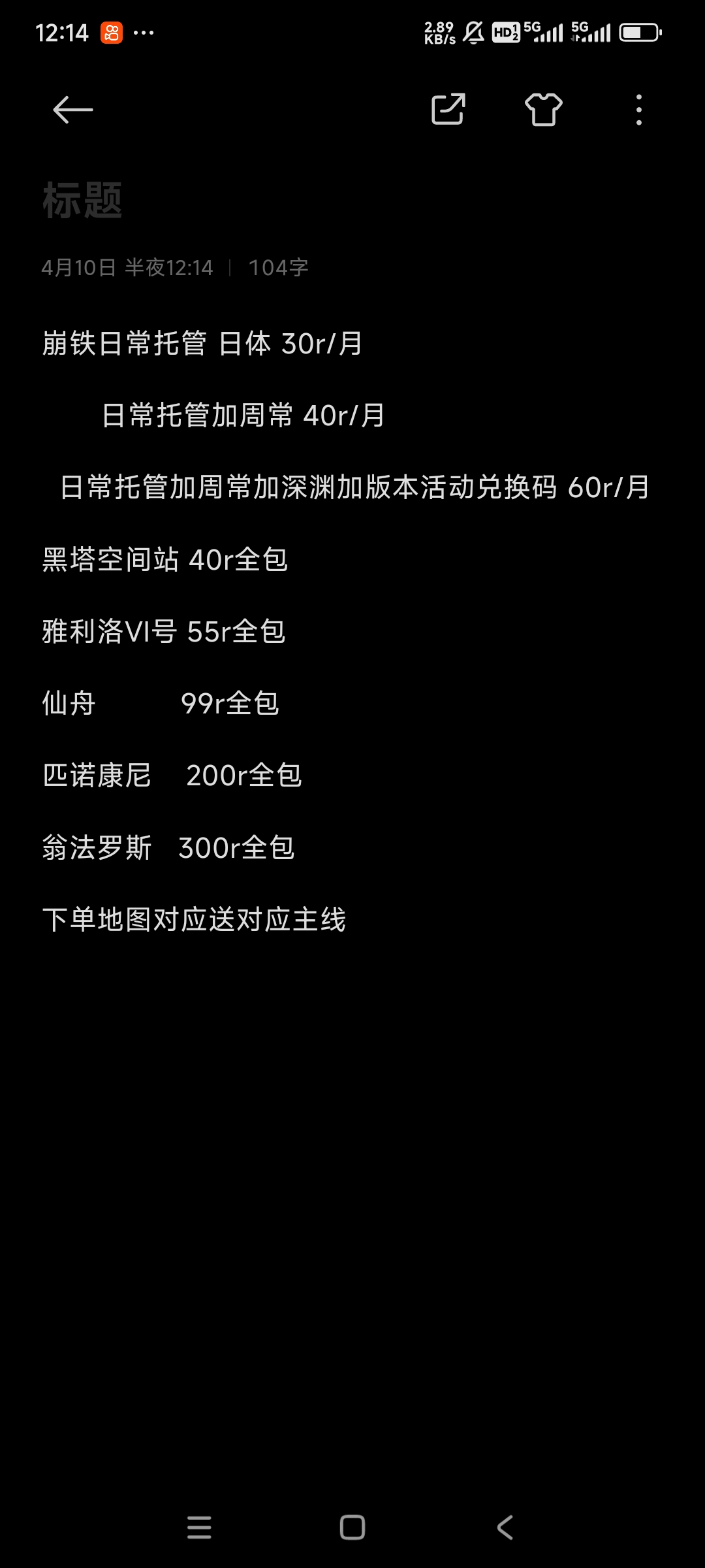 以下为该打手设置的代练报价,选择项目可指定该打手接单。