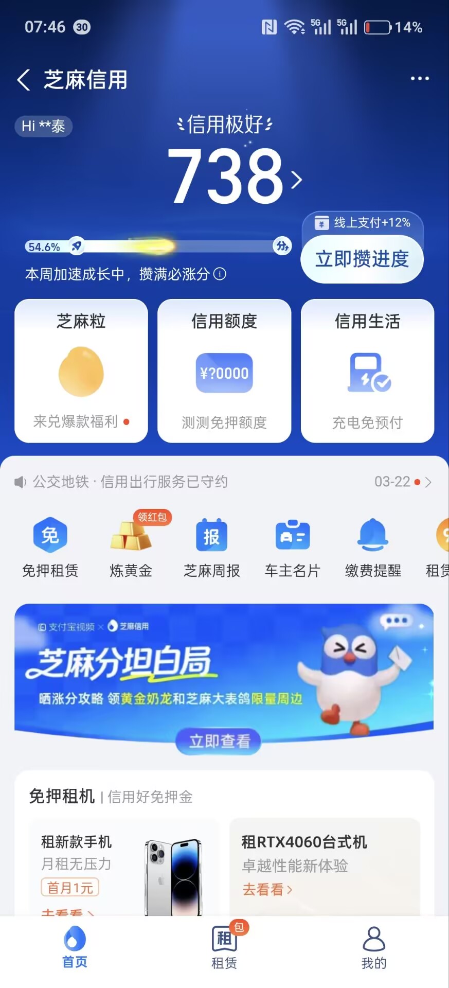 支付宝信用分截图