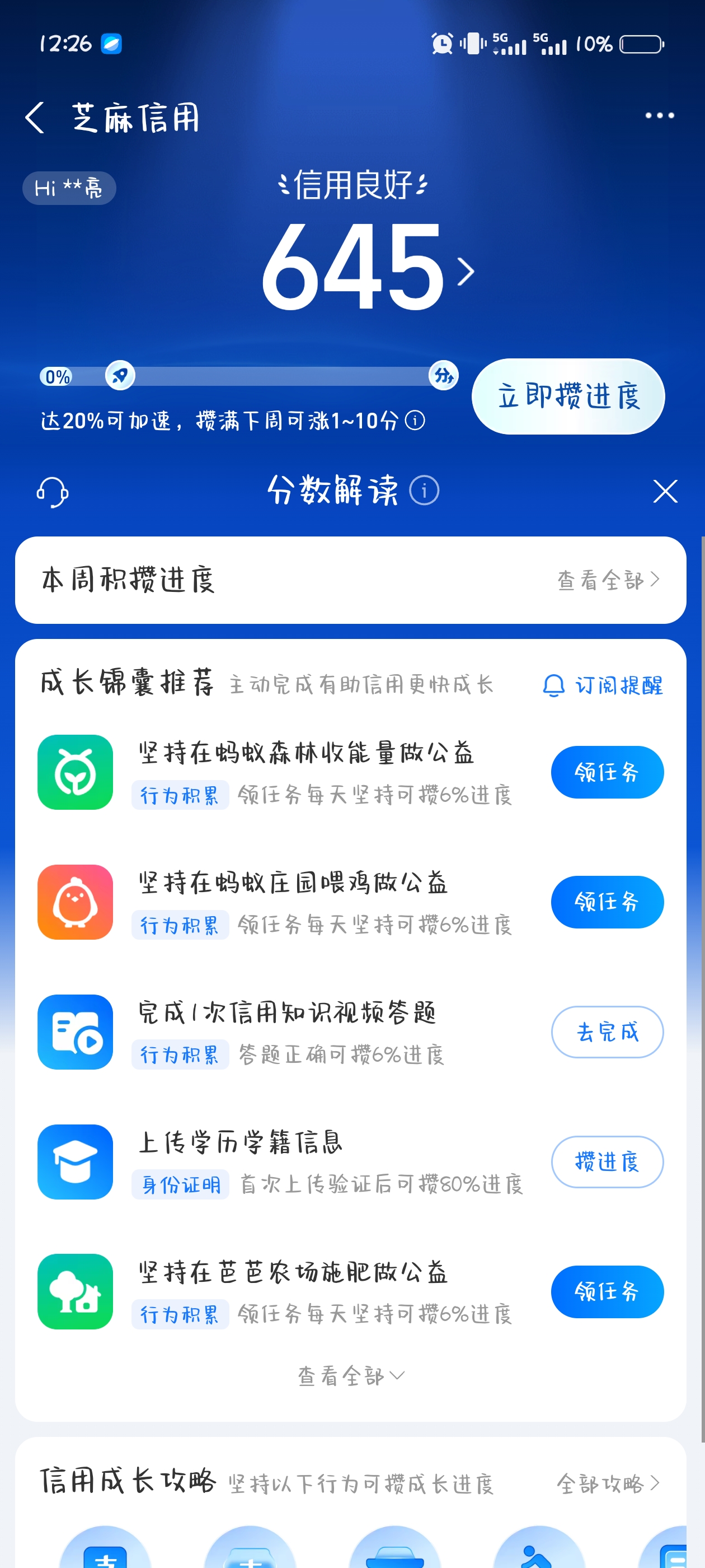 支付宝信用分截图