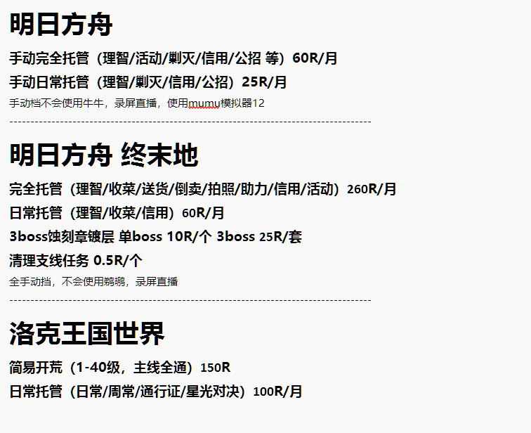 以下为该打手设置的代练报价,选择项目可指定该打手接单。