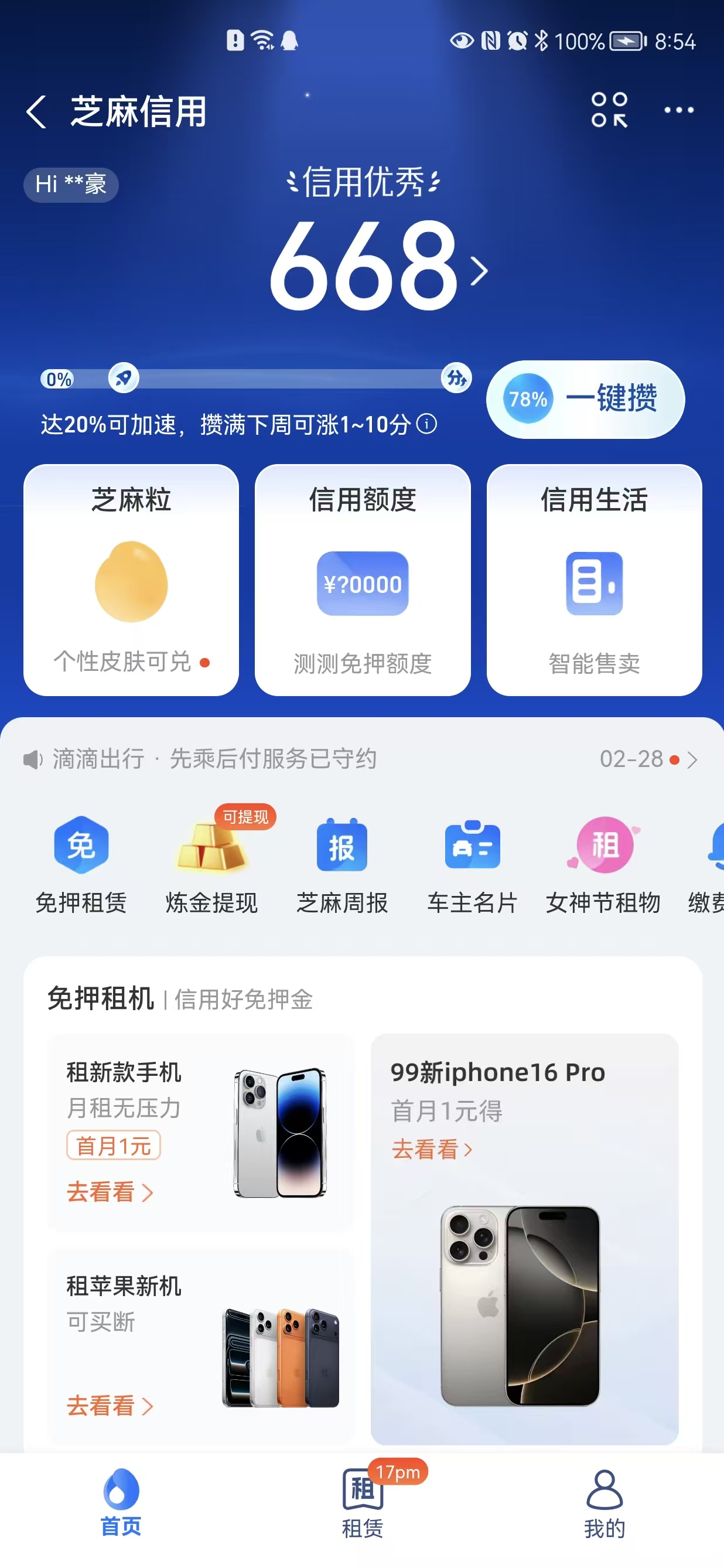 支付宝信用分截图