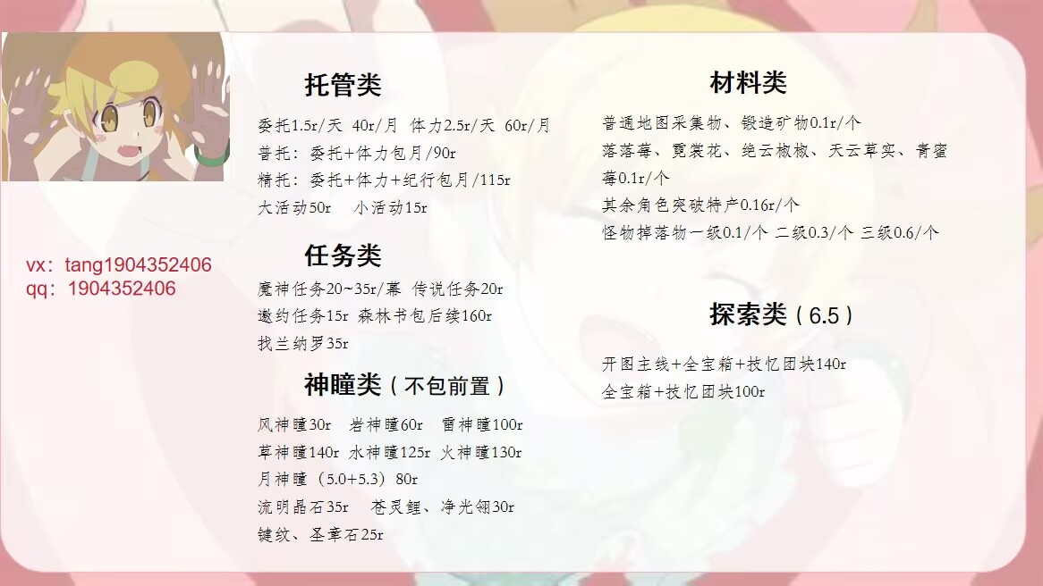 | 全托:委托+体力+纪行+周本+声望 | ¥125.00 | 找Ta下单 |