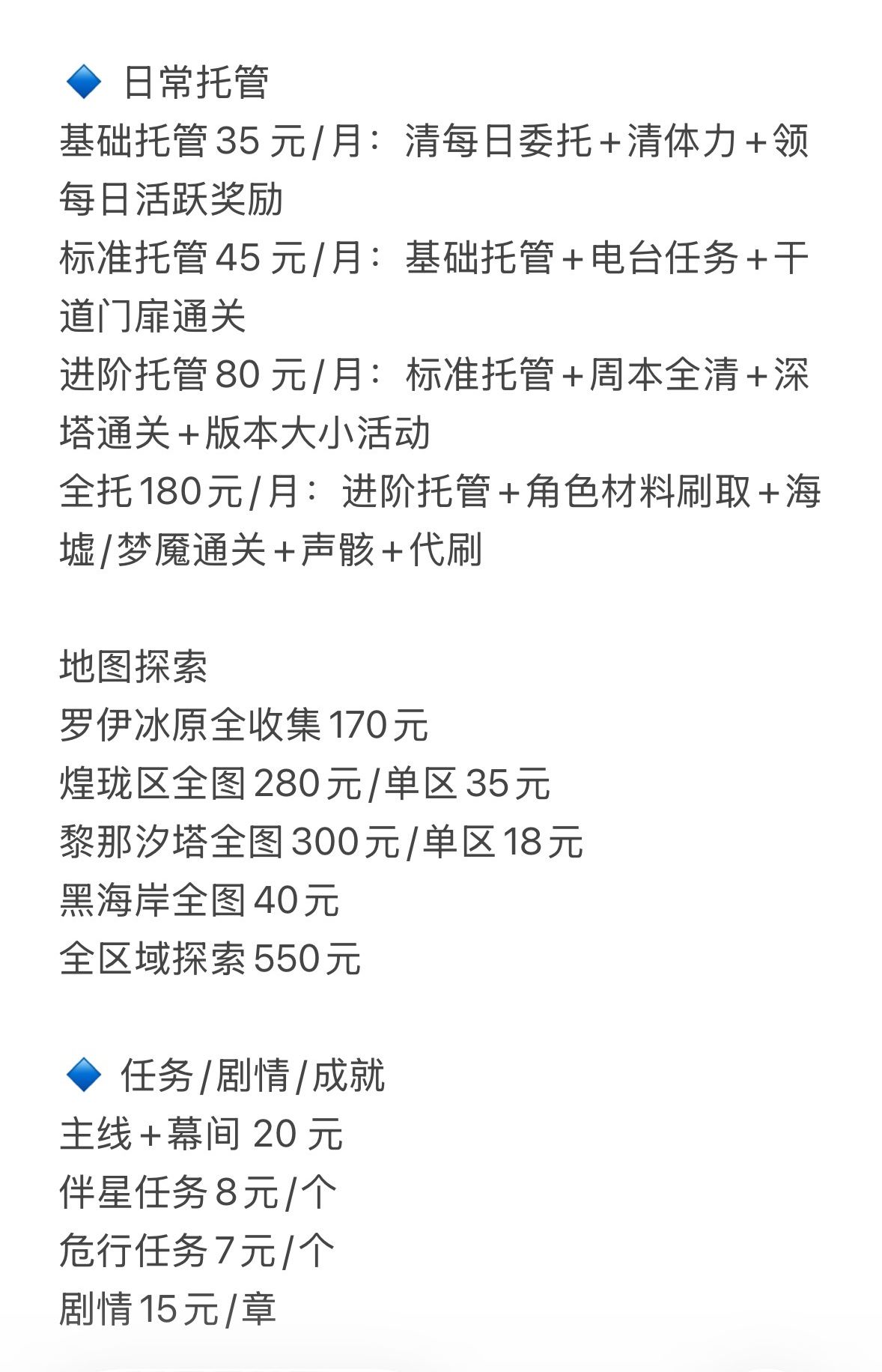 以下为该打手设置的代练报价,选择项目可指定该打手接单。